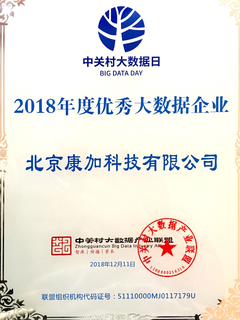 除了大咖云集,共商大势,会上还同期发布了中关村大数据产业发展指数、中国大数据经济生态图谱,并公布年度优秀大数据企业奖。北京康加科技有限公司(以下简称康加科技),凭借在产品研发、大数据应用、健康管理等方面的优势,与其他17家企业一起脱颖而出,荣获“2018年度优秀大数据企业奖”。